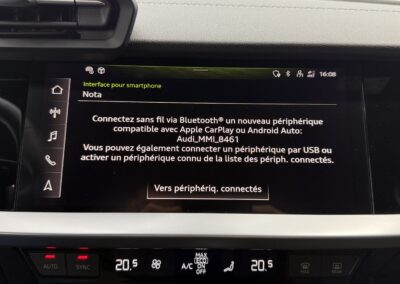 - Audi sound system : 10 HP incluant un HP central et un subwoofer, amplificateur à 6 canaux avec une puissance totale de 180 watts